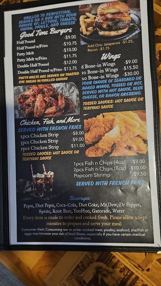 The menu at Good Time Bar & Grill offers an array of delicious options. The burger section shines with customer favorites like the 1/2 lb burger and the patty melt. Light bites include various salads, ensuring health-conscious diners have choices too. For hearty appetites, chicken strips and seafood selections are also available, combining classic flavors with quality ingredients.