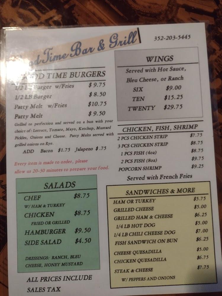 Welcome to Good Time Bar & Grill, your go-to spot in Belleview for delicious grilled cuisine and a vibrant atmosphere! Located at 8921 E Hwy 25, we take pride in offering a diverse menu featuring hearty meals, refreshing cocktails, and a wide selection of beers. Enjoy dining on our lovely terrace or choose from delivery and takeout options. Experience live music, karaoke nights, and sports broadcasts, making every visit memorable. Our welcoming staff, accessible facilities, and great happy hour specials ensure there's something for everyone. Join us for lunch, dinner, or a late-night snack, and let the good times roll!
